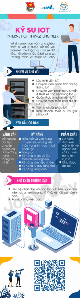 Kỹ sư IOT (internet vạn vật) cho phép thiết bị vật lý được kết nối với internet, thu nhập và chia sẻ dữ liệu, nói cách khác là bổ sung sự “thông minh kỹ thuật số” cho thiết bị.